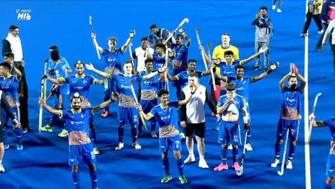 इससे पहले दिन के एलिमिनेटर मुकाबले में हैदराबाद तूफांस ने एचआईएल जीसी को 2-0 से हराकर क्वालीफायर-2 में प्रवेश किया। हैदराबाद के लिए शिलानंद लाकड़ा ने शानदार प्रदर्शन करते हुए 16वें और 39वें मिनट में गोल दागे, जिससे उनकी टीम ने मैच पर पूरी तरह नियंत्रण बनाए रखा।
